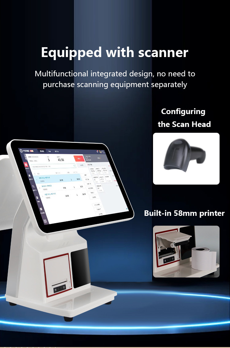 15 inç tarayıcı yazıcı Tüm bir POS Sistem Terminal Restoran Restoranı 15.6 inç POS Bilgisayar Yazılımı Kazip Kayıt Makinesi