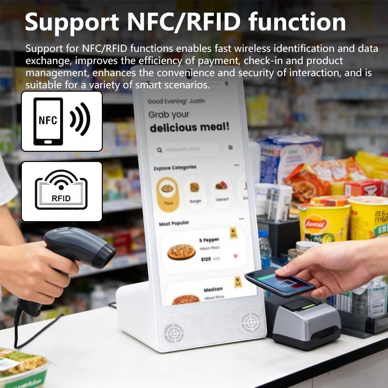 Bağlantı, iş terminalleri için önemli bir gerekliliktir ve bu Android tablet bu düşünceyle üretilmiştir. Entegre WiFi, karmaşık kablolama olmadan esnek kurulum sağlarken, NFC desteği, erişim kontrol sistemleri, üyelik tanımlama, mobil ödeme iş akışları ve müşteri kimlik doğrulama senaryolarıyla sorunsuz entegrasyona olanak tanır. Bu yetenekler, cihazı akıllı perakende, sadakat programları ve temassız hizmet ortamları için güçlü bir seçim haline getirir.